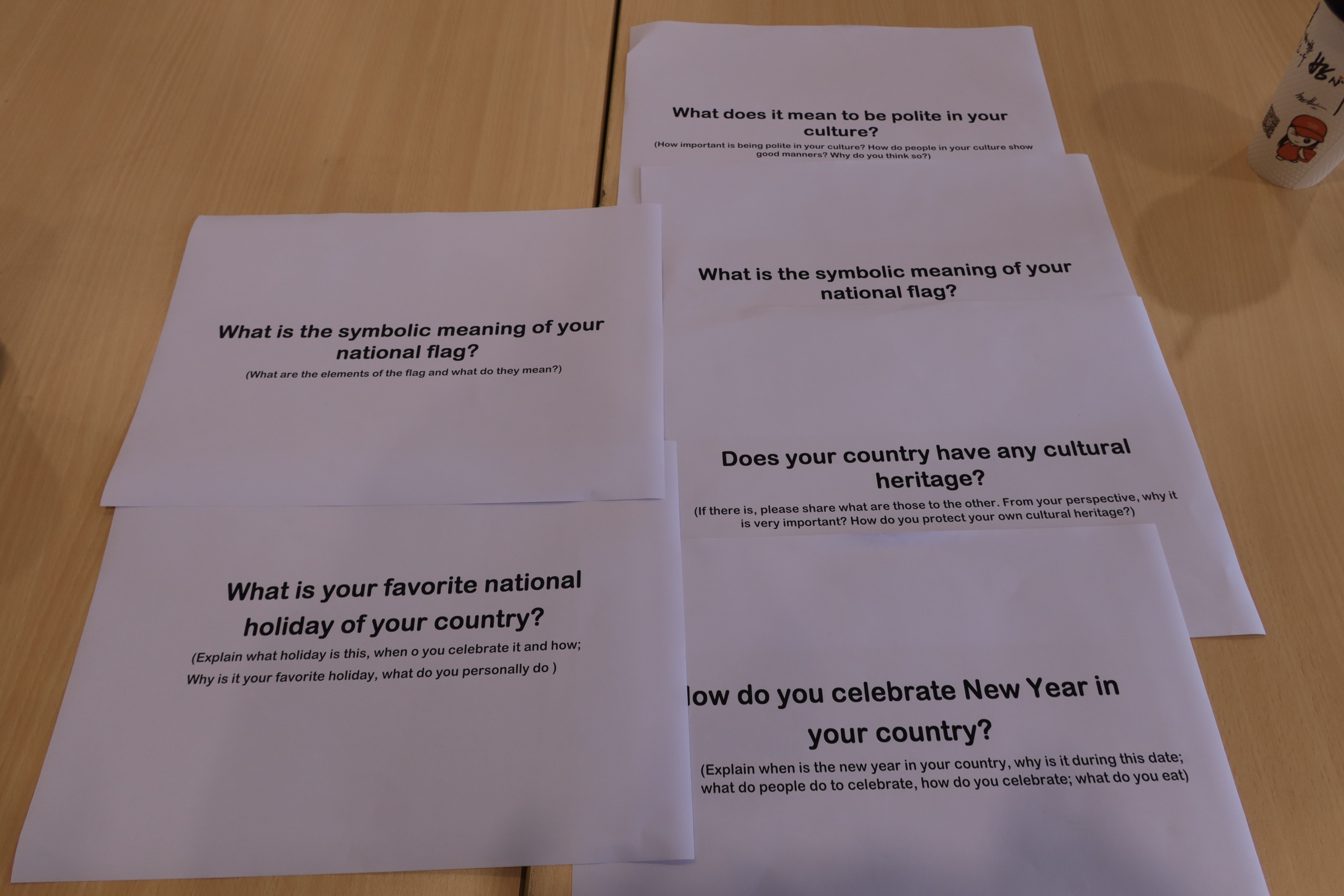 Through these dialogues, participants gained new insights into many cultures. For example, they learned that in Cambodia, it is taboo to touch someone's head, and that in Tajik culture, the number seven symbolizes perfection and happiness. They discovered that Mexican weddings can last for a long time, even up to a month, and that Georgian culture emphasizes great respect for women. They also learned that the national flag of Nepal is the only non-rectangular flag in the world, consisting of two overlapping triangles, symbolizing the Himalayas.