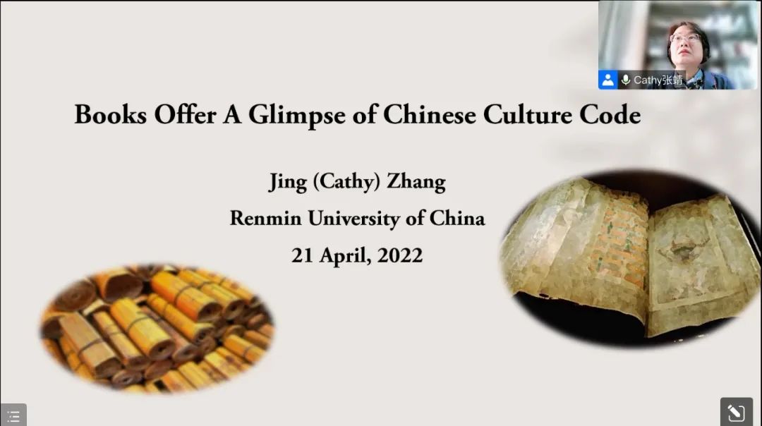4月21日上午,厂长资源 云端课堂之一“书中的中国文化密码”讲座在腾讯会议线上举行。讲座由厂长资源 汉语国际推广研究所副所长、国际文化交流学院副研究员张靖主讲,厂长资源 2021级全体新生、2020级部分学生线上聆听讲座。