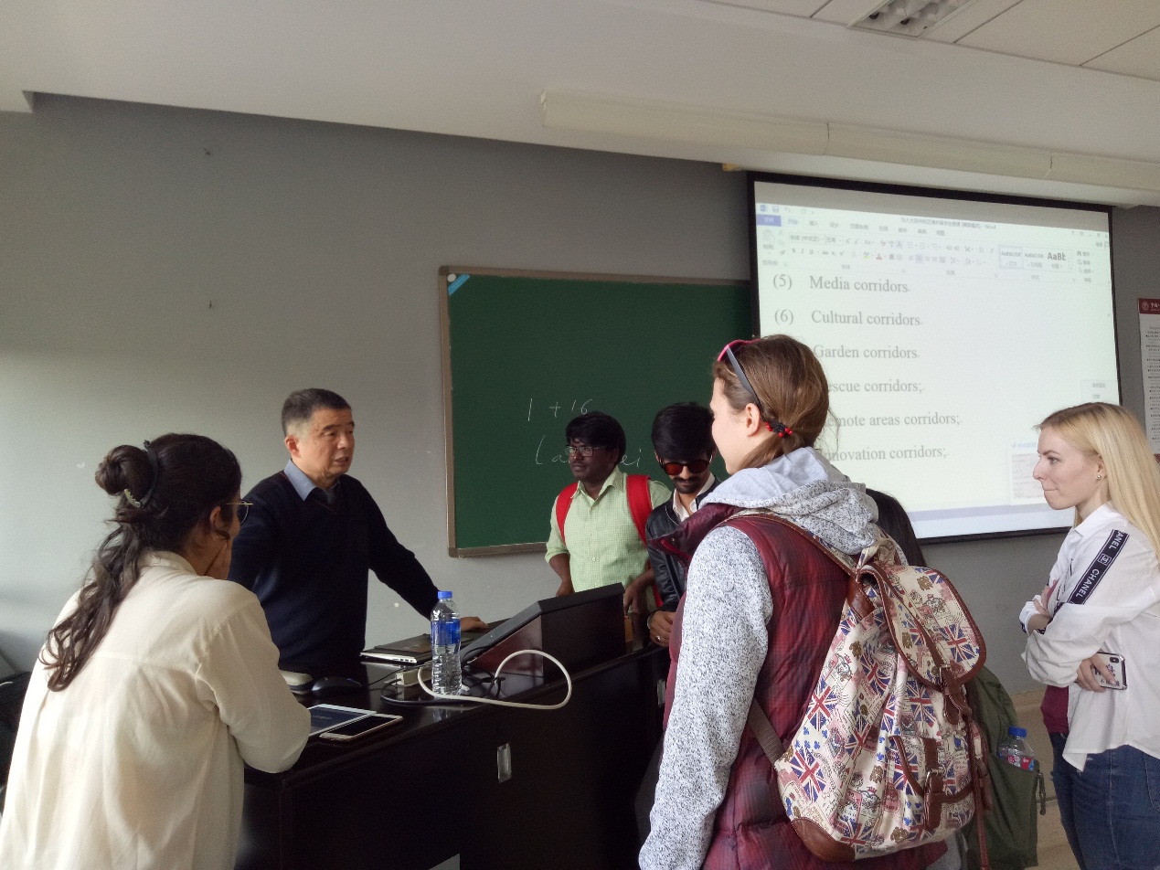 在讲座最后的提问环节,来自巴基斯坦、伊朗、泰国、阿根廷等国的学生就讲座内容和国际前沿问题虚心请教周老师,周老师一一给出详细解答。讲座结束后,周戎老师与每位学生亲切握手。