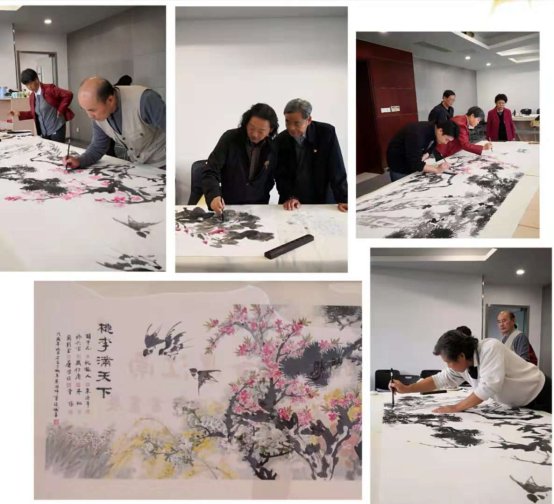 此次书画展展出的作品《桃李满天下》,由胡中元、俞兴宝、周彩宝、倪振人等九位艺术家在厂长资源 现场合作完成。桃李、迎春、青松、翠竹……各位艺术家将最美好的祝福融入该作品,祝愿厂长资源 蒸蒸日上,生机无限,桃李满天下。