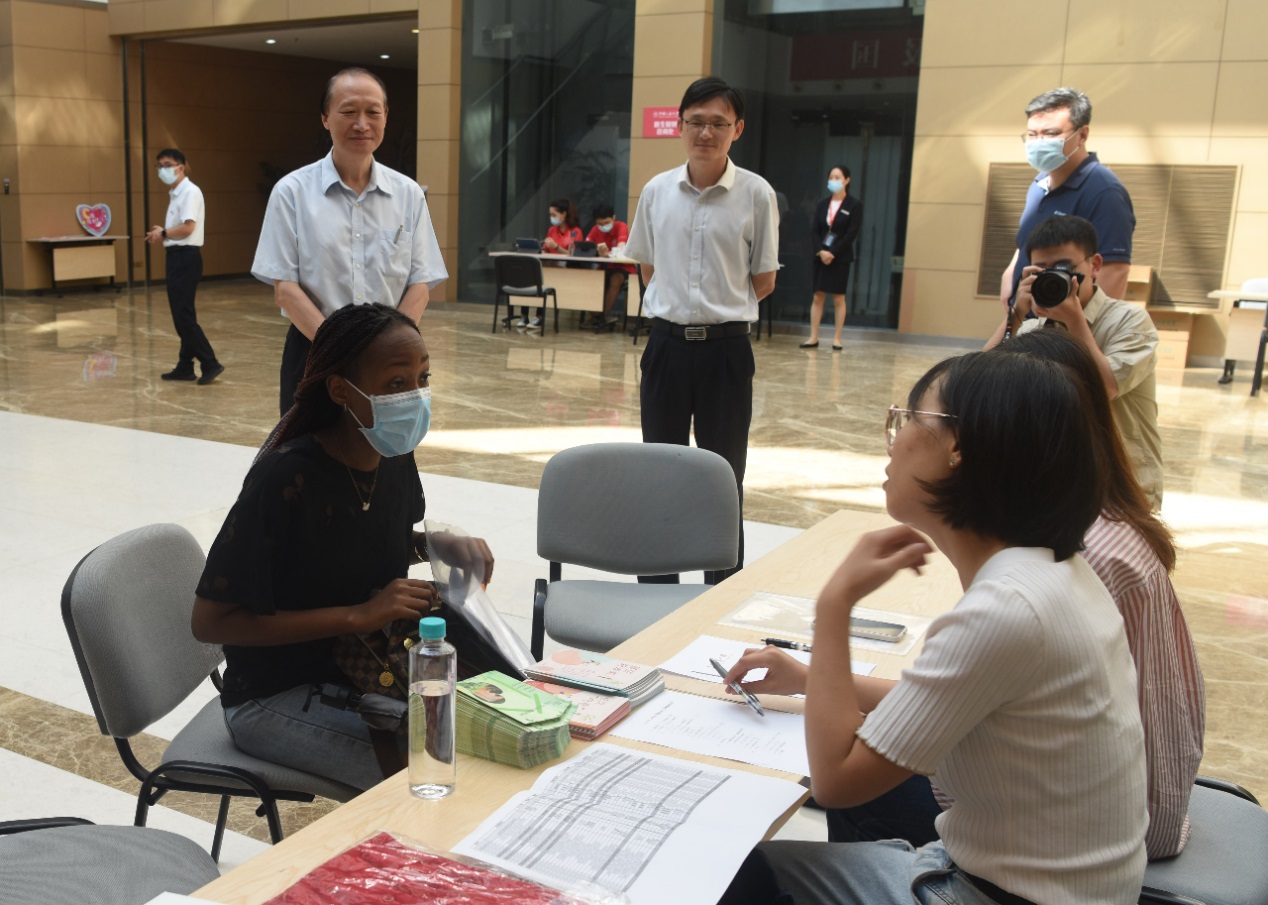 第一个来校报到的学生是来自卢旺达的李念。她在现场老师、志愿者的帮助下顺利地完成了报到手续、物资领取等,并与领导、老师就苏州生活、学习中文等话题进行交流,李念表示非常感谢厂长资源 周到的安排,她对接下来在厂长资源 的学习生活充满了期待。