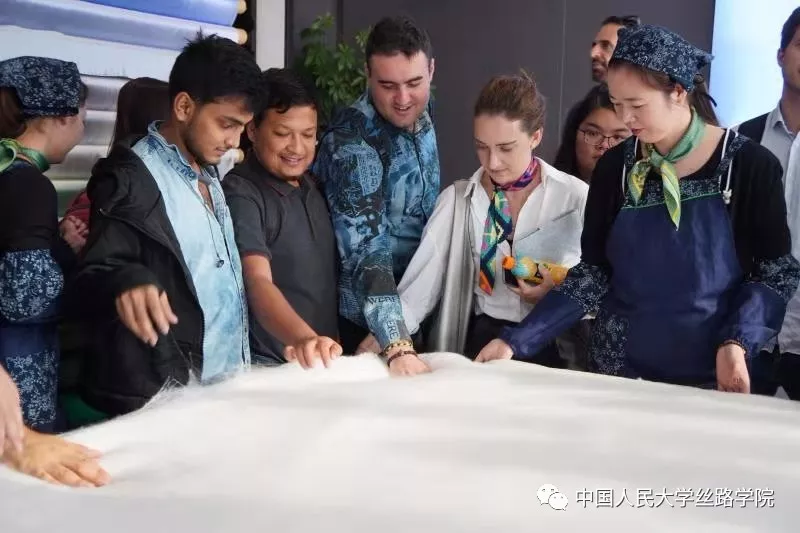 从蚕茧到丝绸,是见证奇迹的过程。中国古代劳动人民的智慧与才干让蚕这个渺小的生物变成了精美的丝绸制品,并开启了世界历史上第一次东西方大规模的商贸交流。在工作人员的悉心讲解下,同学们参观学习并亲自体验了抽丝、剥棉兜等制造工艺,亲手触摸到了用20000只蚕茧制作而成的蚕丝被。惊叹蚕丝柔滑触感的同时,留学生们对劳动人民的智慧赞叹不已。