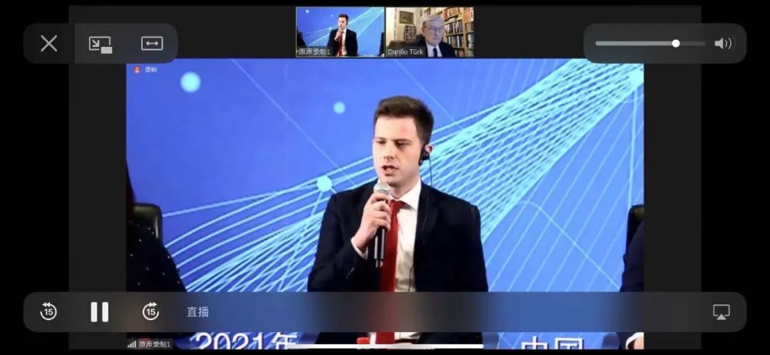 来自塞尔维亚的张文迪(Vladimir Milic)与来自越南的孙明诚(Kyi Sin)作为优秀青年代表在现场参会,其他同学通过Zoom线上参会。会议在小鹅通、长安街知事、B站、知乎、微博、百度、观察者网等平台同步直播,共有超过100万人在线观看。