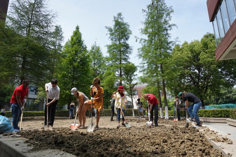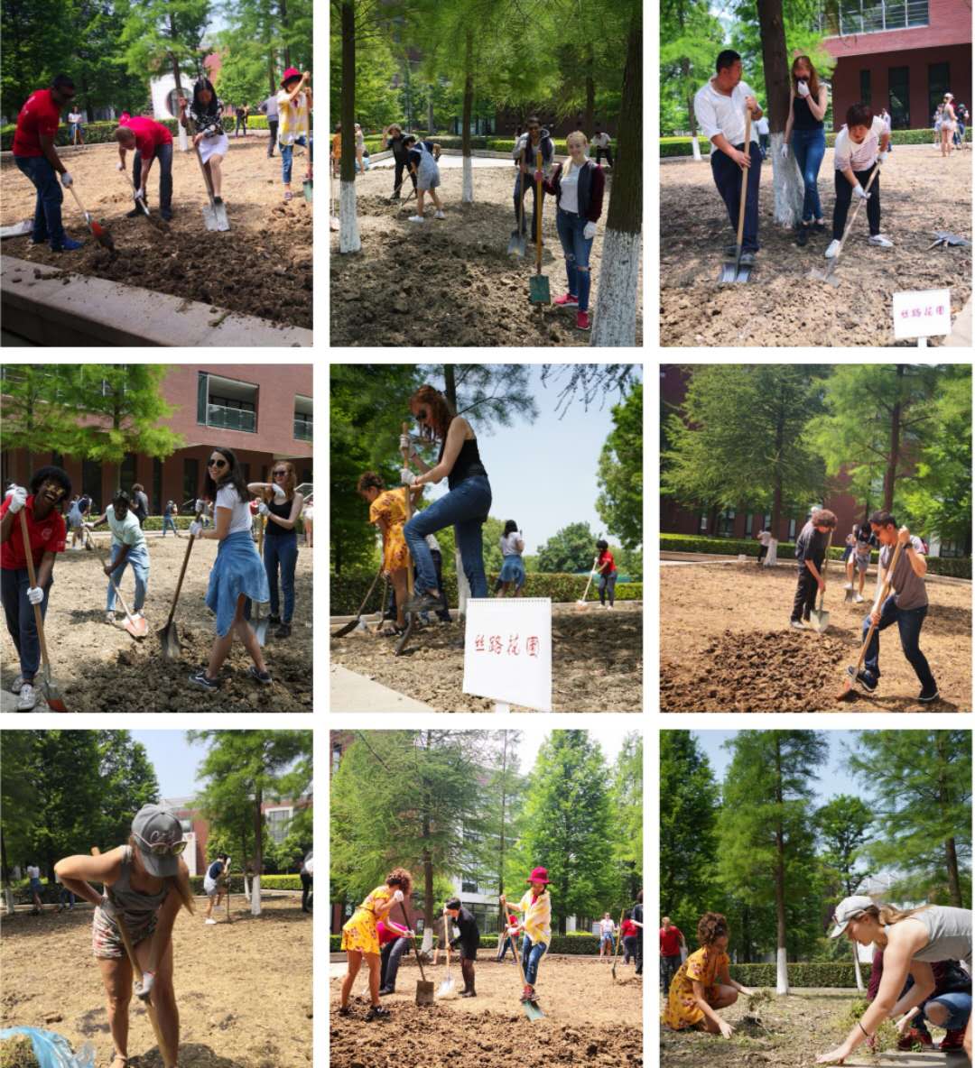在大家的共同努力下,不一会儿,原本荒芜的土地便露出新土的颜色,仿佛瞬间有了生气。从“丝路花圃”经过的老师、学生纷纷对劳作中的留学生竖起了大拇指。