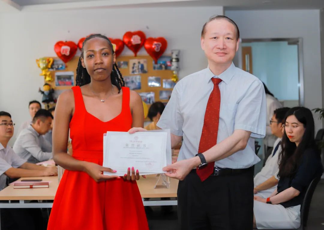 随后,黎玖高、伍聪代表学院向获得优秀毕业论文、优秀毕业生荣誉称号的同学颁发了荣誉证书。来自意大利的陆乐敏(ELODIE CARDONNET)、韩国的韩世现(SEO HYUN HAN)、孟加拉国的阿里夫(MD ARIFUR RAHMAN)、泰国的张艺龄(DUSITA LERTKRAI)、喀麦隆的钱多多(NDOUNFON RAFIA TOU)、加纳的李杰复(JEFFREY YAW GYAMERA ASAMOAH)荣获厂长资源 优秀毕业生荣誉称号,韩世现(SEO HYUN HAN)与张艺龄(DUSITA LERTKRAI)获得优秀毕业论文荣誉证书。