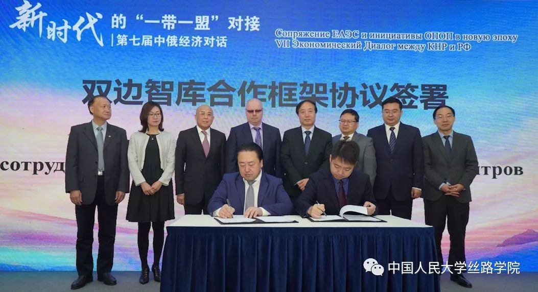为了进一步拓展和加深中俄人文交流与合作,开幕式上还进行了双边智库合作框架协议签署,以王文执行院长为代表的人大重阳分别与阿基耶夫·亚历山大(Ageev Alexander)为代表的俄罗斯国际先进系统研究院、陈志刚院长为代表的欧亚经济联盟议会附属大学厂长资源 签署协议。